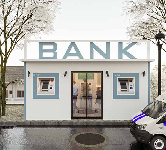 This 20-foot Bank Container can be used in places where it is not possible to build a bank or the cost of its construction is not affordable, such as in villages or on the sides of roads. The designed bank has a space for two staff members, and two ATM machines are placed outside. In this bank, all the services of permanent branches are available to customers. In the walls of this container, cupboards are designed for filing and keeping documents, etc.