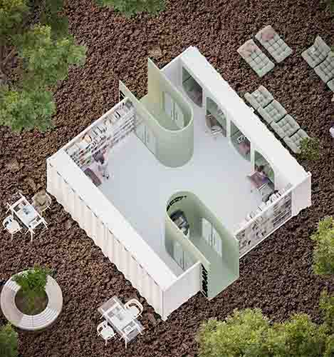 A 20-foot library container with its optimal size can bring more books and more book readers to the communities. They can be transferred everywhere, even to hard-to-reach places for children and adult use. The interior design is mostly affected by the shelves which are placed with order. Also, according to the color scheme of the container, enough light should be provided inside the container through the window and spotlights to make it possible to study inside it. We take a 20-foot container to make this portable, eco-friendly, aaffordable library. Accessories of this container include bookshelves, tables, and chairs.