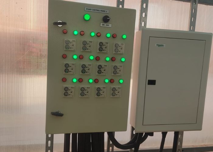 The client requested the installation of a control panel for the pumps in two smart greenhouses with specific requirements for precise control of each pump using timers.