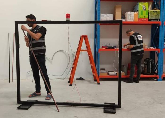 The Future Sky team created a heart-shaped structure using iron and wiring to simulate its play. They also integrated a Q-LIGHT alarm system that would trigger when the iron rod makes contact with the heart's body, simulating the breaking of the heart. To meet the client's requirements, an RGB lighting system was used in the project. The team ensured that the heart structure and wiring system were reliable and robust to withstand the continuous use during the Expo.